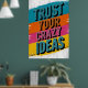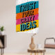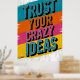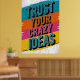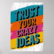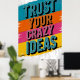 A bold and energetic graphic design featuring the empowering phrase "TRUST YOUR CRAZY IDEAS" in vibrant, distressed typography.