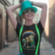 Kiwis wear all black as the t shirt is with Green lettering to match the environment and yellow for joy and purple thistle to match my hair.