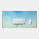 Calming desk mat featuring blue skies and the word UNPLUG.