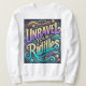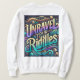 The t-shirt design "Unravel Your Riddles" features a whimsical and artistic composition. The text is displayed in an elegant, multi-coloured font blending shades of purple, teal, and gold. Abstract elements like swirling patterns and puzzle pieces enrich the background, evoking mystery and curiosity, making it a perfect choice for introspective thinkers and lovers of enigmas.