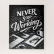 This striking black-and-white magazine-style design captures the essence of dedication and perseverance through its bold typography and clean visual composition. The phrase “Never Stop Working” stands at the center in an artistic, decorative style, symbolizing continuous effort and an unbreakable mindset.