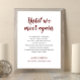 This elegant dark red and black memorial sign, with it’s touching Until We Meet Again poem in blue, is a beautiful way to remember and honour the loved one at the Celebration of Life gathering. Customise with your text on the bottom.
