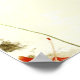 a white/cream abstract piece with two bright red poppies