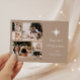 Inspirational Christian religious multi photo collage Christmas greeting card features Unto us a Child is born white typography with an illustrated Christmas star and six photos on a neutral taupe background.