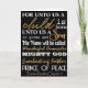 This elegant religious Christmas card features the beautiful prophetic verse fortelling the Messiah, from Isaiah 9:6 in the Bible, which says, "Unto a child is born, unto us a Son is given, and his name shall be called Wonderful, Counsellor, Everlasting God, Prince Of Peace" in black and gold typography on a black background. Beautiful, powerful verse regarding the birth of Jesus.
