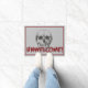 Scare away unwanted guests or have a little fun this Halloween with this spooky doormat. Features a black vintage skull with the words "Unwelcome" in blood red ghoulish typography on a light grey background, surrounded by a dark red border.