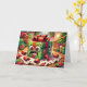 Discover the unexpected with our "Unwrapped Terror: The Surprise Inside" Christmas card. The scene unfolds in a cozy, festive room, but the center of attention is a startled, living Christmas gift bursting out of its wrapping. This playful yet mischievous card brings a dose of humor to the holiday season, ideal for those who enjoy a little twist in their Christmas storytelling. Gift a laugh with a hint of holiday hijinks to your loved ones this year!