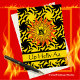 Up Helly Aa, Shetland fire festival greeting card with a sun and fire design. The Guizar Jarl is centred inside the sun floating in a fiery sky design. A celebration with a Norse Scandinavian theme held in late January. Art, image, and verse copyright © Shoaff Ballanger Studios, 2023.