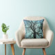 This throw pillow features the view from the bottom of a very tall tulip tree looking way up to the top. The blue twilight sky creates an interesting lacy abstract pattern of silhouetted black trunk and branches. This huge old tree lives in Robert H. Treman State Park in Ithaca, New York. The image is repeated on the back.