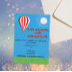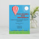 Featuring a playful hot air balloon illustration with bright, cheerful colors and a humorous tagline like “Up, Up & Away… from responsibility!”, this invitation sets the tone for a lighthearted, joyful celebration.