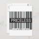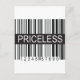 A typical black and white upc code, with a broad band of black displaying the word, "PRICELESS".