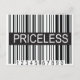A typical black and white upc code, with a broad band of black displaying the word, "PRICELESS".