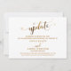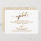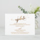 This suite's distinction is due to the modern script font embellished with hearts and a faux gold foil effect used for accent phrases. If you're in the position of needing to inform your wedding guests that you've had to cancel your wedding, here is an elegant option. In this piece, the pretty script font was used to create a graphic simply depicting the word "update". Use the template fields to add your personal details and make this unique, modern design your own. The white background can be changed to any colour you prefer. The back has been covered in a repeating gold pattern which allows your chosen colour to show through between the lines. Please reach out with any special requests or for customising assistance. // 80 //