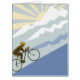 Illustration of a cyclist pedaling up a steep mountain at sunrise