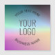 Your own logo and customisable text on colourful background.