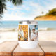 The bottle looks even better in real life. The ice cubes I put in lasts all day! I have my bottle with me all the time. It's summer and having something cold to drink feels amazing. With this bottle I always have something super cold. I have only tried the hot drink once and it lasted a long time as well. The color blue is a navy blue and the white printed on it is vibrant. It printed perfectly. I love my personalized smile water bottle.