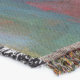 A quality printed throw has its advantages. This is a much finer weave throw than its loopier cousins, and though lighter, it is worth the investment for custom room accessorizing. The back is much prettier than the typical brown, and the fringe on the long sides very vivid, the selvage nicely done. Before photographing, I washed the throw in cold water, delicate, with a thicker woven throw the same size. On tumble dry low, this throw was dry in half the time as the other. This is a very practical quality if you use throws for furniture covers or to wrap up in frequently. The sleekness of the fabric makes it a great layer for accenting or protecting without the feeling of sitting on too much stuff. Perfect for napping or when you feel a light chill coming on. The color printing is beautiful and on this fabric, matched the design and color of my Photoshop image. This is an advantage for blending room fabrics and colors. The fringe on the short sides prints the colors from the design image and therefore varies from the side fringe. I streaked a white fractal line through the plaid pattern to give the illusion of weaving. This printed as crisp as an illusory thread, and put some white in the short side fringe, showing another advantage of print vs loomed- for artistic purposes, line lines, detail, and color integrity can be planned and preserved. My loomed throws have color limitations and more of a needlepoint texture. Print throws reproduce an exact image. The throw felt a little stiff straight out of the package, but this went away in the first delicate wash. Of course I searched the wash water for ink or bleeding and there was none.