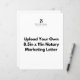 Bring your pre-designed notary letter for marketing and upload the file to this blank template for professional marketing letters. Add them to your marketing treat baskets or in a mailing campaign to law offices and real estate agencies, hospitals, funeral homes and many more businesses in your area!