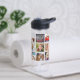 The bottle looks even better in real life. The ice cubes I put in lasts all day! I have my bottle with me all the time. It's summer and having something cold to drink feels amazing. With this bottle I always have something super cold. I have only tried the hot drink once and it lasted a long time as well. The color blue is a navy blue and the white printed on it is vibrant. It printed perfectly. I love my personalized smile water bottle.