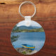 A little blue fishing boat, beached beside a holly tree on the shore of the Upper Lake, Killarney, County Kerry, Ireland, on a peaceful summer's day. The highest mountains in Ireland, Macgillicuddy's Reeks, can be seen in the background.