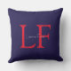 Front side: a wonderful and modern pattern design made with the initial letter of your own name over a navy pattern of red and blue stripes . Back: your name monogrammed. A nice and unique decor-idea