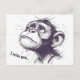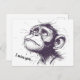 Send a moment of whimsical introspection with this postcard, featuring the soul-searching stare of a primate. Rendered in striking monochromatic tones, the sketched monkey looks upwards with an expression of curiosity and wonder. This artistic portrayal captures the essence of contemplation that transcends species, inviting us all to look beyond the ordinary. It's a perfect piece to send to those who appreciate the profound simplicity of the animal kingdom and the art it inspires.