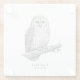 A minimalist monochrome coaster featuring the elegant Ural Owl (Strix uralensis).