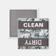 Magnet with military urban camouflage seamless pattern background and CLEAN / DIRTY text.