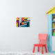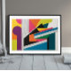 Urban Frequency captures the vibrant, fragmented pulse of city life through sharp geometric forms, bold contrasting colours, and rhythmic linear patterns. Angular shapes collide with organic curves, and textured white lines slash through the canvas like static in a city’s electric hum. It’s a piece that blends playfulness with edge—ideal for contemporary interiors or merchandise that needs to stand out with both energy and sophistication.
