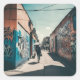 A vibrant, chaotic urban street scene with colorful graffiti covering every wall, showcasing bold tags, characters, and murals. The streets are bustling with people in trendy streetwear, and the overall vibe is energetic and rebellious.