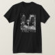 A cityscape, urban design is featured on this shirt.