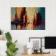 Urban Pulse captures the inner rhythm of a city through vertical structures, layered color fields, and raw painterly texture. Warm reds and golds collide with cooler tones, evoking movement, density, and the constant tension between order and chaos.