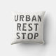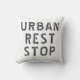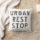 "Urban rest stop" funny quote in dark grey grungy stencil style font on white background