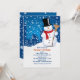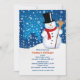 A smiling snowman with a snowy, cityscape background invites you to a winter celebration. Join the fun! Perfect for holiday parties, birthday parties and more.
