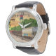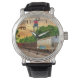 A watch featuring a beautiful evening sunset behind an old water tower and train in downtown Rogers Arkansas, United States.