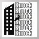 This bold black-and-white illustration creatively blends urban life with typography. Featuring a high-rise building and a silhouette of a climber or window cleaner suspended mid-air, this design visually echoes the word “Knock” repeated vertically like echoes on the city wall. Perfect for posters, modern prints, wall decoration, and urban-themed branding. Ideal for fans of minimal art, architectural graphics, and striking black-and-white compositions.