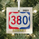 Unique glass ornament featuring the US 380 Highway. Makes a unique souvenir of your visit, or the year of moving to Aubrey, Texas.