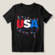 Proud to be an American is written in navy blue underneath large letters USA in red white blue stars typography. 50 Stars for 50 states outlining our American country map (randomly placed). There's stars representing Alaska at the top and Hawaii at the bottom left-side. Show your American citizenship patriotic love and pride for our great country and constitution and what our forefathers fought for and our military continues to fight for our freedom and independence as a nation. NOTE: If selecting a different background colour be sure the white text and images in the design show. Original Design © TamiraZDesigns.