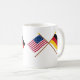 The gently waving flags of the United States and your "other" favourite place on crossed poles are an excellent way to display your affections or affiliations. Whether your current or ancestral home, someplace you have visited or would like to visit, or just because you like that flag, you need to show it on a mug!