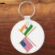 The gently waving flags of the United States and your "other" favourite place on crossed poles are an excellent way to display your affections or affiliations. Whether your current or ancestral home, someplace you have visited or would like to visit, or just because you like that flag, this keychain is for you!