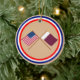 US and Qatar Crossed Flags Ceramic Tree Decoration