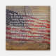 This design features a mixture of photography and digital art. The Preamble to the Constitution of the United States is set over a background of a diminished opacity unfurled United Stated flag set over a close-up photograph on the grain of cracked stained cedar wood.