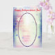 This greeting card features a photograph edited into sketch art of a cowboy mounted on a horse holding an American flag. Fill in the template text for the cover and inside greetings, remove the text, or click customise to select a font style, size, and colour you like. Original cover photo ©Patricia AZ Phillips