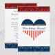 Customised patriotic American flag heart military wedding invitation, in patriotic red, white and blue colours! Font colour is navy blue. This invite template is ready for you to customise your wedding day details in the provided template areas. If you would like to change the font or the colours of fonts, placement of text or rearrange anything simply click on 'customise' and all these options will be available to you! Please visit our store for matching patriotic items such as reception placement cards, table number cards, response cards, postage stamps, military ornaments and wedding favours, and much more.