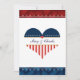 A beautiful custom patriotic American flag heart military personalised wedding invitation, in patriotic red, white and blue colours! Font colour is navy blue. This invite template is ready for you to customise your wedding day details in the provided template areas. The front of the card features a patriotic American heart with stars and stripes, in American colours. The middle of the heart has a template area ready for you to add the bride and groom names. If you would like to change the font size or the colours, placement of text or rearrange anything simply click on 'customise' and all these options will be available to you! Please visit our store other styles and matching patriotic items such as reception placement cards, table number cards, response cards, postage stamps, military ornaments and wedding favours, and much more.