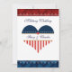A beautiful custom patriotic American flag heart military personalised wedding invitation, in patriotic red, white and blue colours! Font colour is navy blue. This invite template is ready for you to customise your wedding day details in the provided template areas. The front of the invitation features a patriotic American heart with stars and stripes, in American colours. The top of the invitation reads 'Military Wedding' and the middle of the heart has a template area ready for you to add the bride and groom names. If you would like to change the font size or the colours, placement of text or rearrange anything simply click on 'customise' and all these options will be available to you! Please visit our store other styles and matching patriotic items such as reception placement cards, table number cards, response cards, postage stamps, military ornaments and wedding favours, and much more.