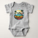 I ordered an all-cotton T-shirt with the same logo for myself and one for the newest addition to my extended family. The T-shirt arrived first, but I left on vacation before the baby's all-cotton onesie was delivered to me. After I returned home, I feared that the newborn for whom it was intended may have already outgrown it; but, fortunately, that was not the case as you can see from the photo. The printing and colors turned out just as I envisioned them: perfection.