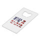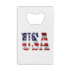 The USA text and the Flag of the United States of America, embedded in each letter. Patriotic Independence Day 4th of July products, gifts, and souvenirs for anyone. CREDIT CARD BOTTLE OPENER