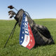 Celebrating the USA's 250th anniversary. This red, white, and blue golf towel has the word 'USA' in the center. The years 1776 and 2026 are next to USA. The top stripe is blue and has white stars. The center stripe is white. The bottom stripe is red with white stars.