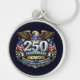 Keychain is shown in a patriotic USA flag eagle 250th anniversary print.
